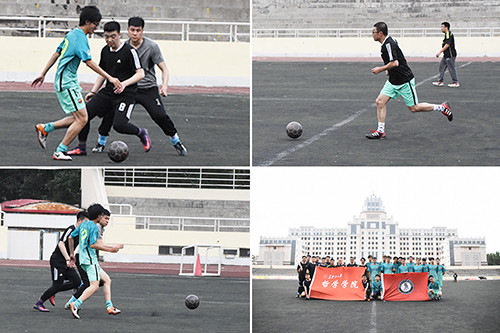 的老师们和大四毕业生于体育场进行了一场精彩的足球对抗赛。
