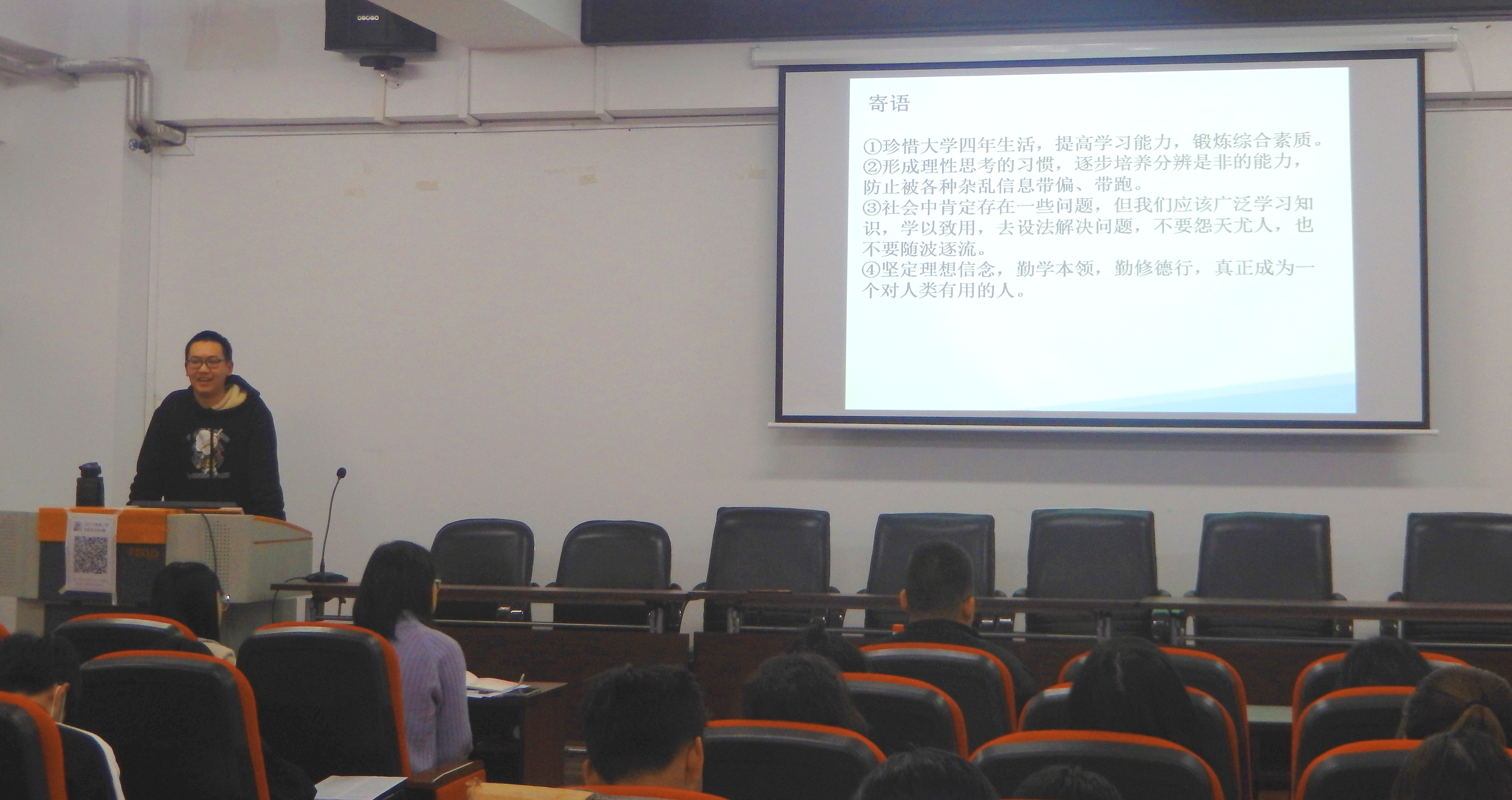 邀请优秀在校学生为大家开展“哲学学习的意义和方法”线下交流会。新生辅导员焦瑞老师主持会议,全体新生参加。