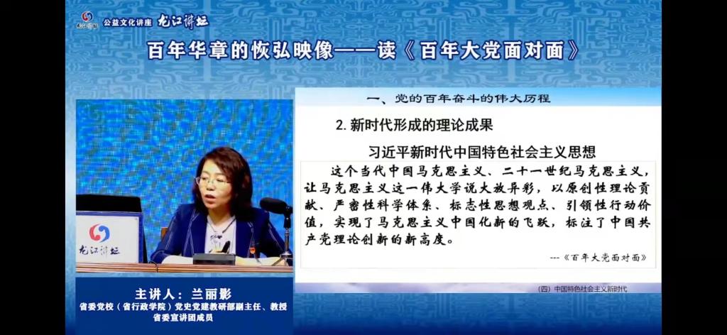 )党史党建教研部副主任、省委宣讲团成员兰丽影教授题为“百年华章的恢弘映像——读《百年大党面对面》”的专题讲座,该讲座以党的百年奋斗的伟大历程、历史意义和成功秘诀三个方面为切入点,重点对百年党史的13个基础性和根本性问题进行了分析和解读,融汇理论和实践、联结历史和现实。在共同学习交流和分享中我院师生围绕讲座内容展开热烈讨论。