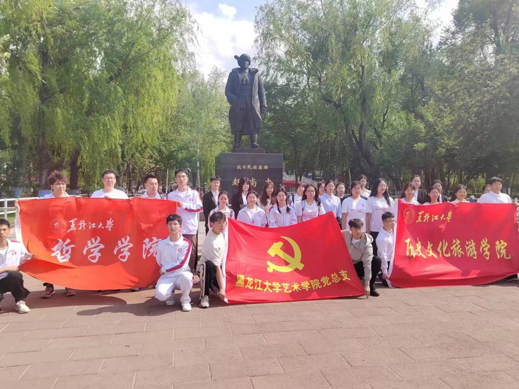 在尚志公园,培训班学员代表以“红色精神传承”为主题进行了接力活动,鼓励学员们用党的光荣传统和优良作风凝聚力量,大力发扬红色传统、传承红色基因,赓续精神血脉。随后,培训班宣讲员高鑫梁带领学员们参观了赵尚志雕像,讲述了著名抗日将领赵尚志不畏强敌、顽强抗争的英雄故事,引导全体学员学习体悟抗联精神,接受红色精神洗礼。最后,培训班学员一起演唱了《不忘初心》《我和我的祖国》,本次情景研学活动在歌声中结束。